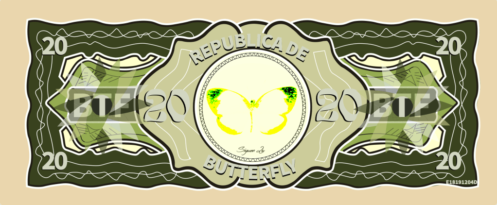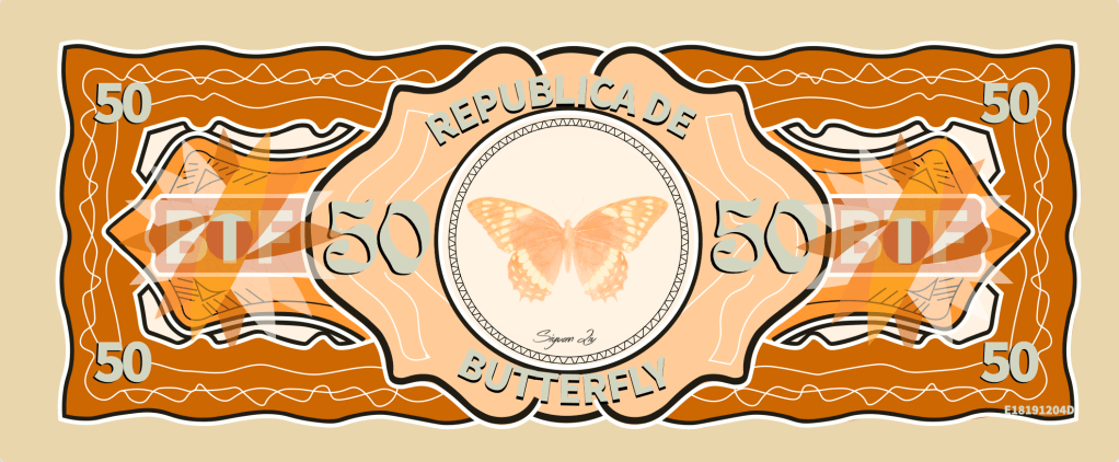 Overview:Drawing on the paper money of real-life countries, a virtual currency for the Land of the Butterflies is created that contains all the elements.